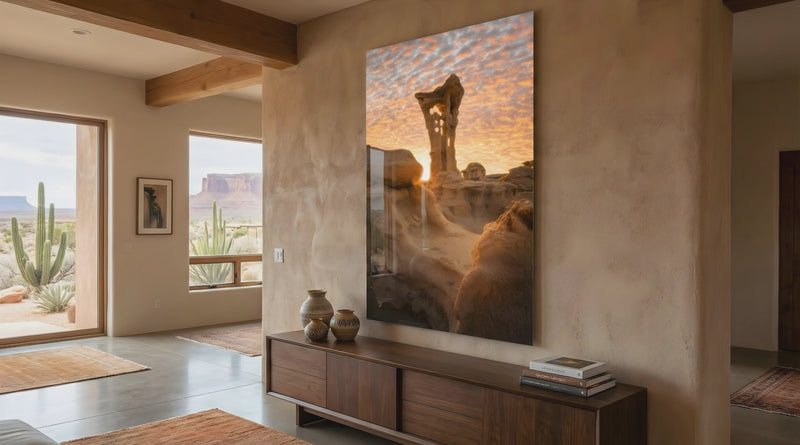 The final print is created using a gallery-grade acrylic face-mounting process, chosen for its depth, clarity, and dimensional impact. This method transforms the photograph into a luminous object rather than a flat image, allowing light to interact with the work in a way traditional prints cannot achieve.